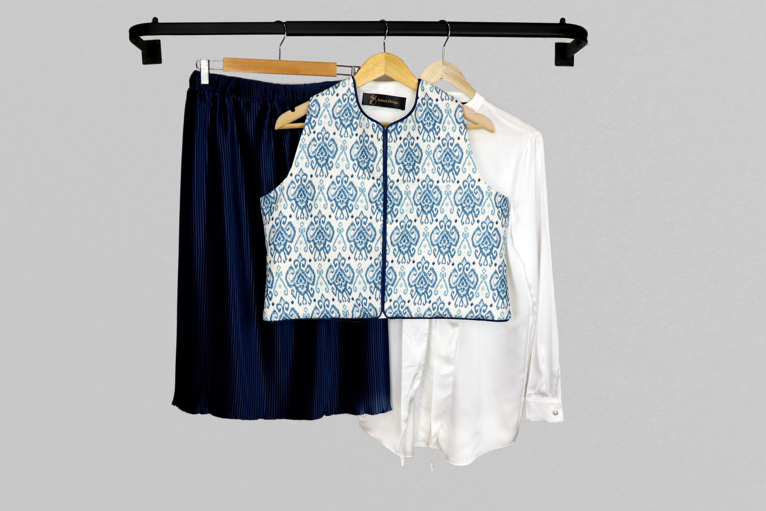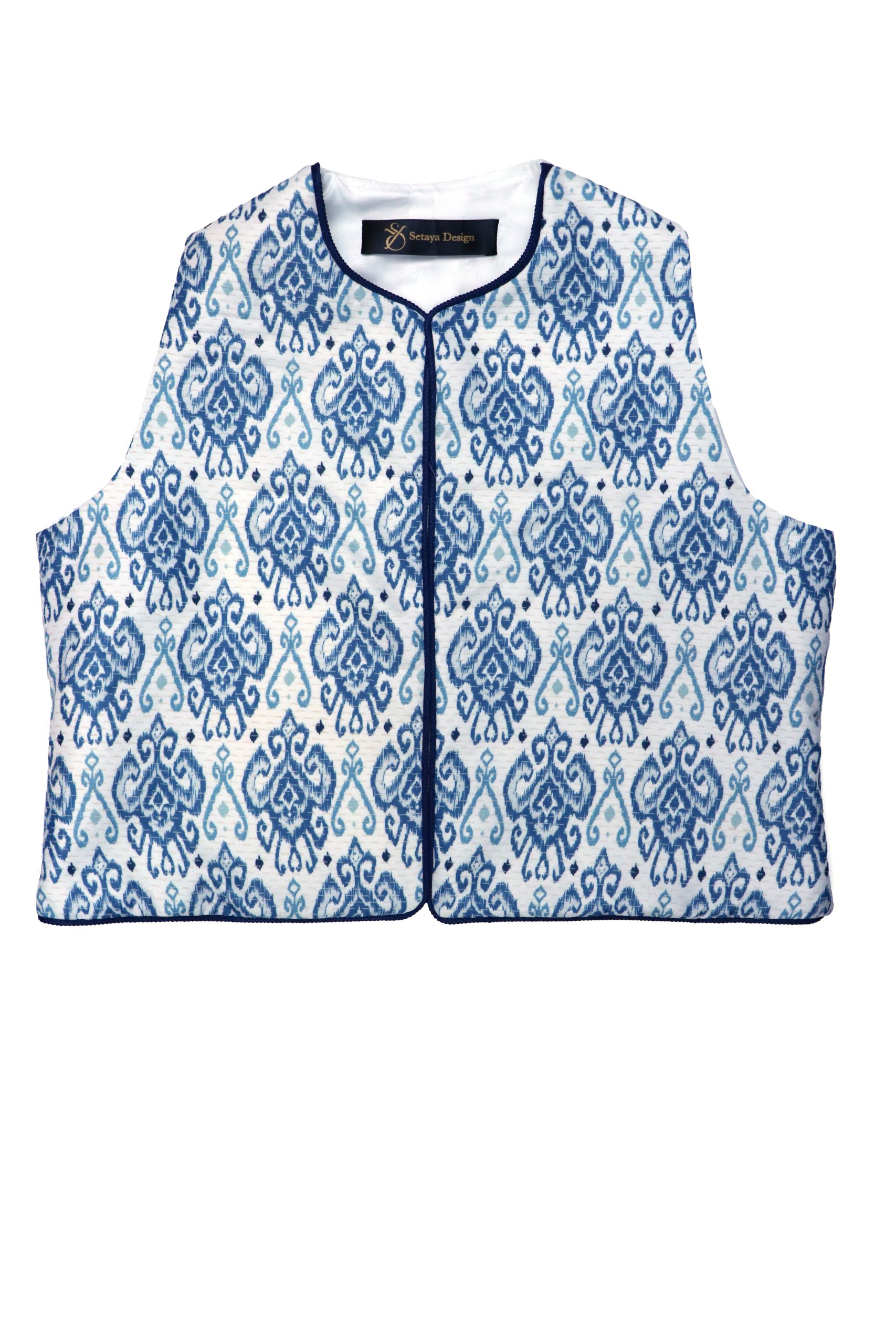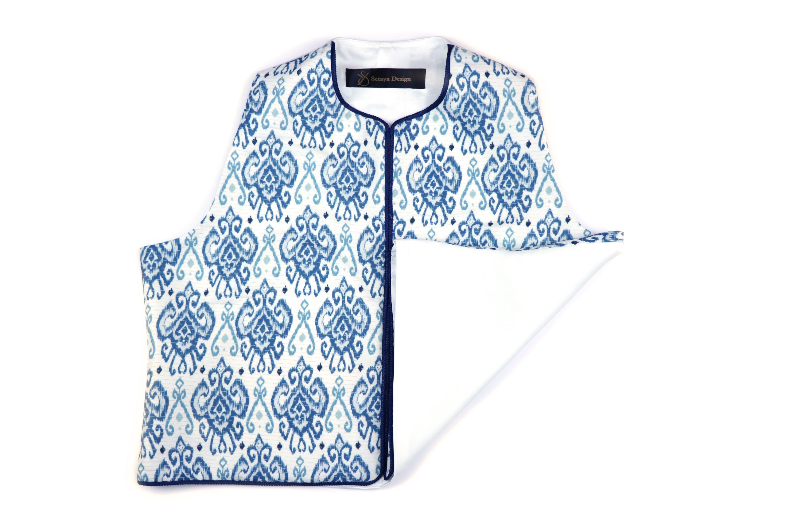طراحی پارچه الهامگرفته از نقوش سنتی و ایرانی است.هر جلیقه جزئیات منحصربهفرد خود را دارد. هر بخش از طرح با دقت در کنار یکدیگر قرار گرفته تا هارمونی بصری حفظ شود و در عین حال، اصالت هنر دست در آن نمایان باشد.
