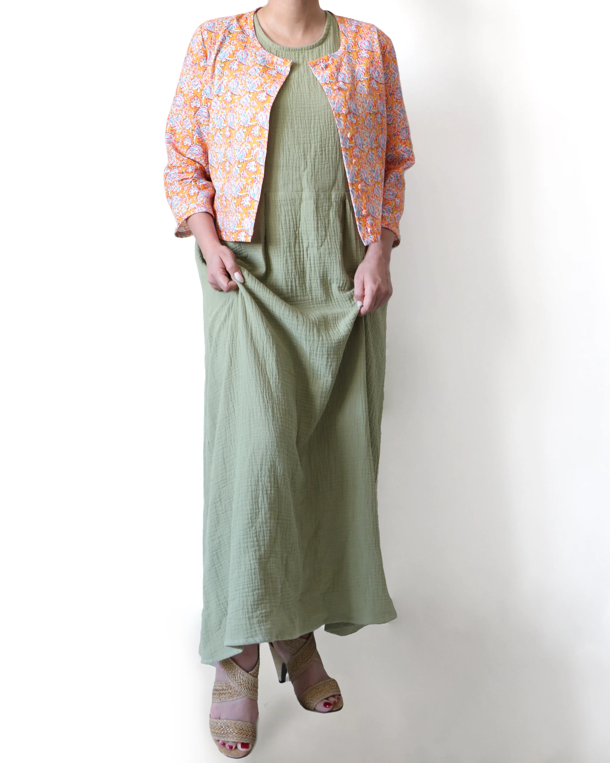 این کت کوتاه با استفاده از پارچه اصیل باتیک، شعری از سنت را در قالب سبکی مدرن بازآفرینی میکند. هر نقش بر روی آن با دستان هنرمندان، به روش چاپ قالبی خلق شده و قرنها هنر، صبر و روح فرهنگی را در خود جای داده است.