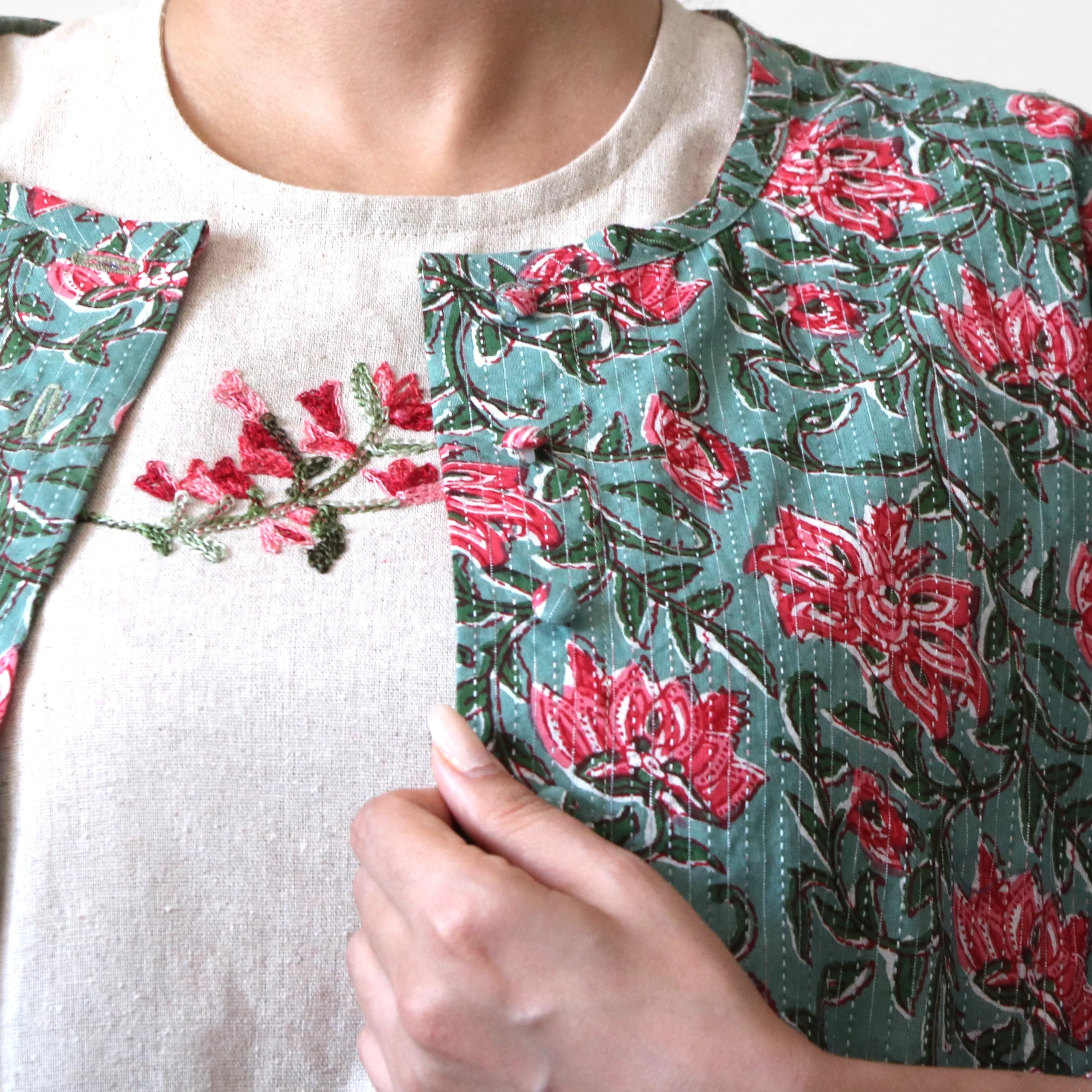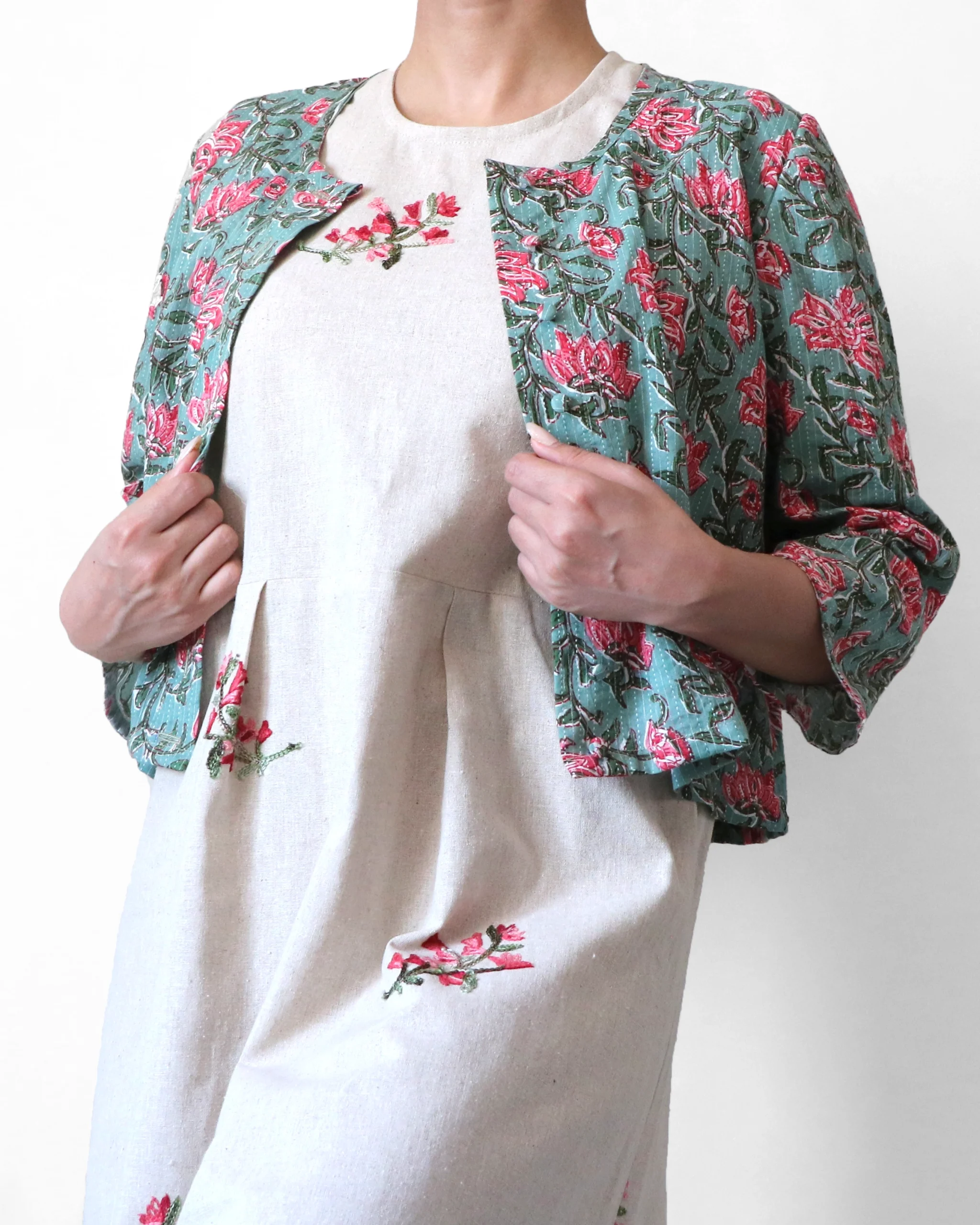 این کت کوتاه با استفاده از پارچه اصیل باتیک، شعری از سنت را در قالب سبکی مدرن بازآفرینی میکند. هر نقش بر روی آن با دستان هنرمندان، به روش چاپ قالبی خلق شده و قرنها هنر، صبر و روح فرهنگی را در خود جای داده است.
